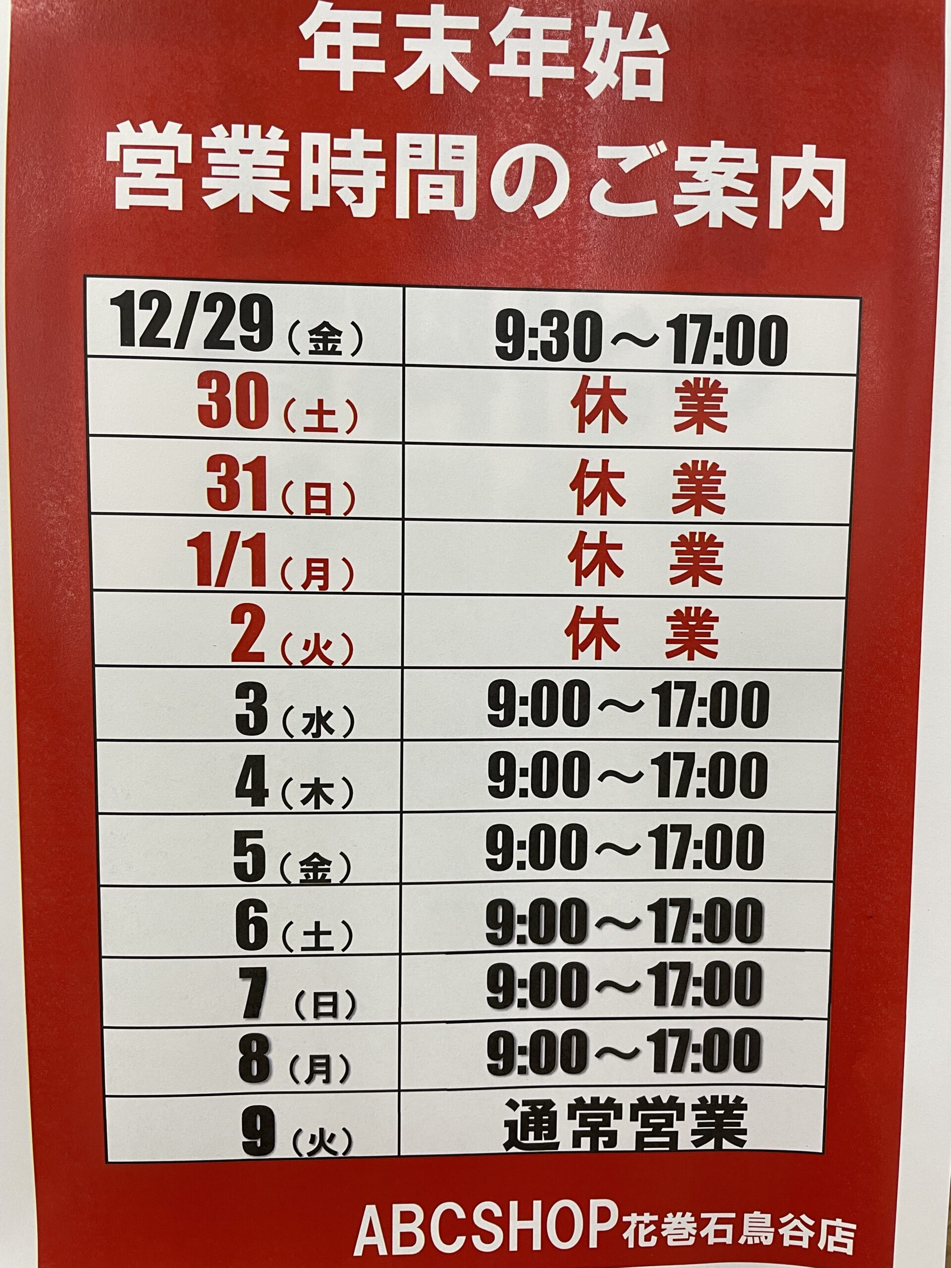 なお、厨川店・津志田店・石鳥谷店・水沢店では、通常通り営業してまいりますので、今後ともABCショップをどうぞよろしくお願いいたします。